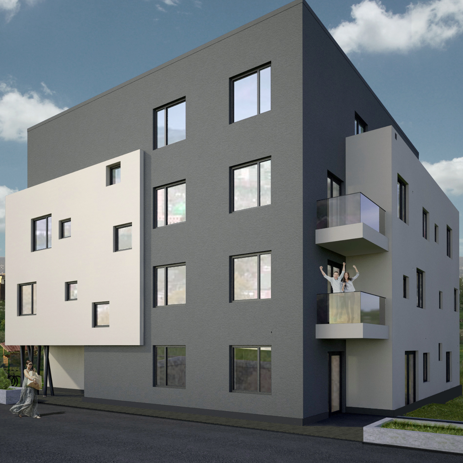 Apartamente cu 2 si 3 camere in Imobil mixt, cu spatii comerciale la parter si 8 apartamente la etaj, plus 1 penthouse!